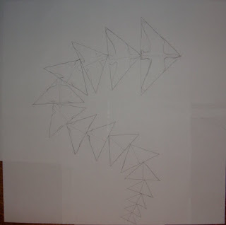 Next I drafted out the geese gradually emerging from the triangles and finally I removed the triangles altogether to leave the birds breaking free on the constraints of the pattern.
